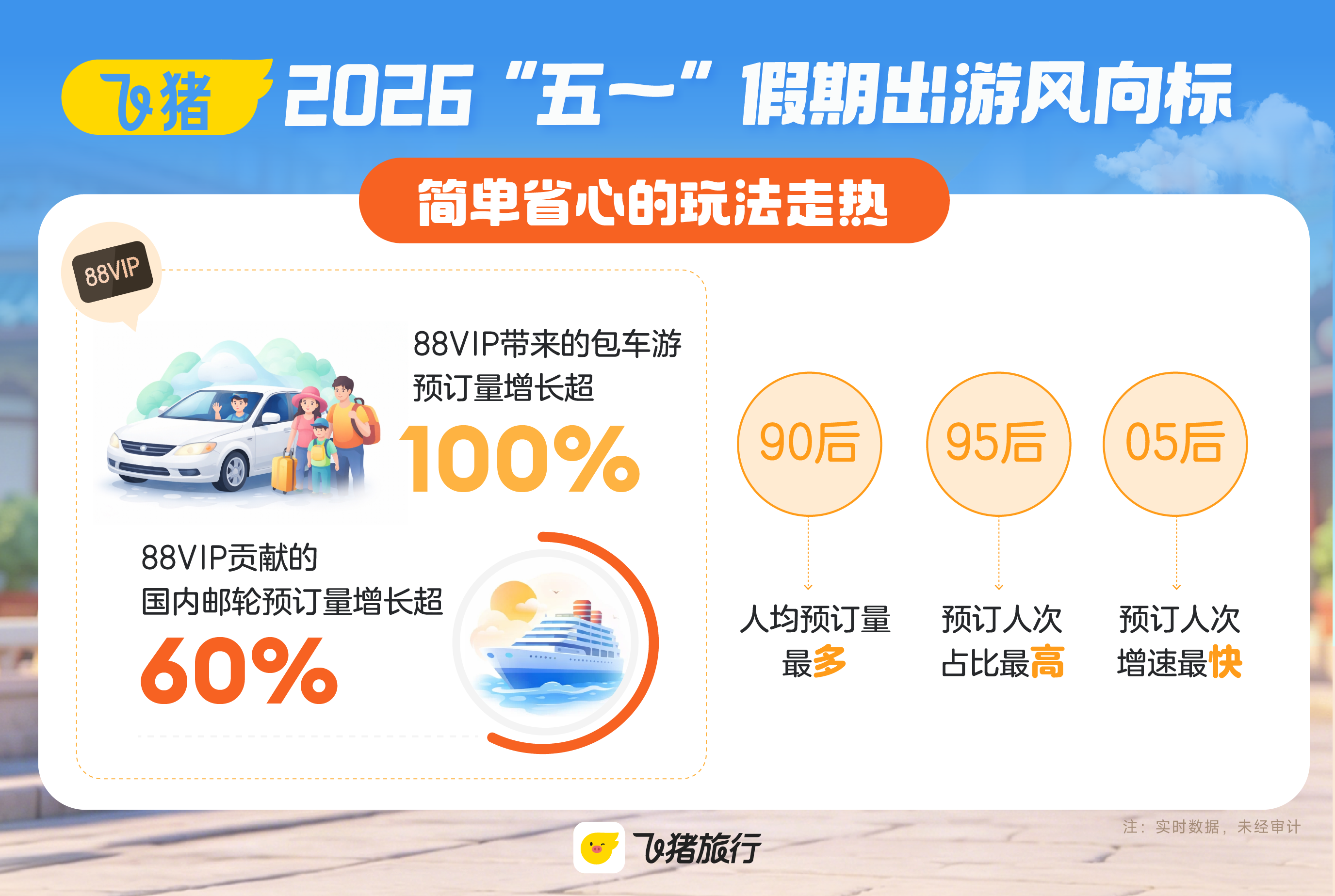 “五一”假期,带娃参观历史古迹、打卡亲子乐园、“刷”博物馆等是出游家庭的最爱。飞猪数据显示,热门乐园、名人故居等国内景点门票预订人次同比增长约50%。国内邮轮预订量同比增长超60%。